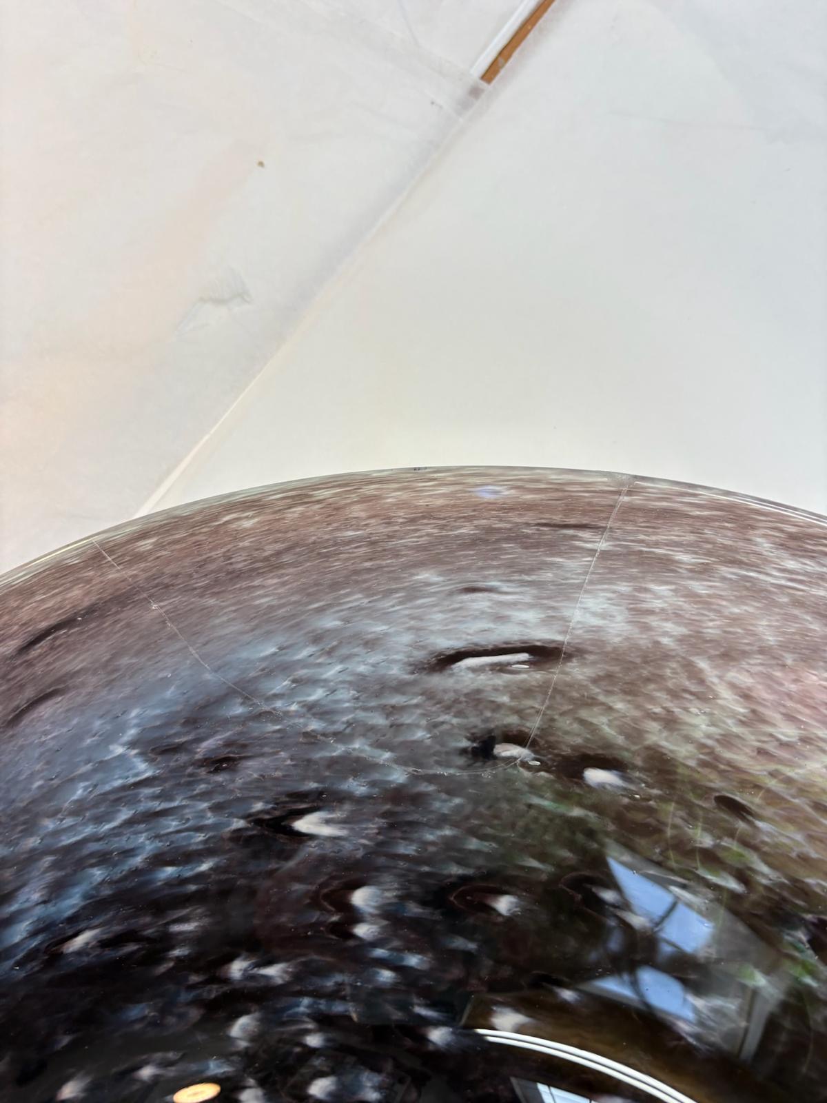 Daarna zetten we het object droog en strak in elkaar met kleine strookjes tape. Pas wanneer de vorm volledig klopt, laten we bij glas restauratie de lijm via capillaire werking in de breuknaden vloeien. Wij werken met een professionele tweecomponenten glaslijm die geen luchtbellen vormt en niet vergeelt. De brekingsindex en lichtreflectie stemmen we zo goed mogelijk af op het originele glas, zodat de lijmnaad zo onzichtbaar mogelijk wordt.
